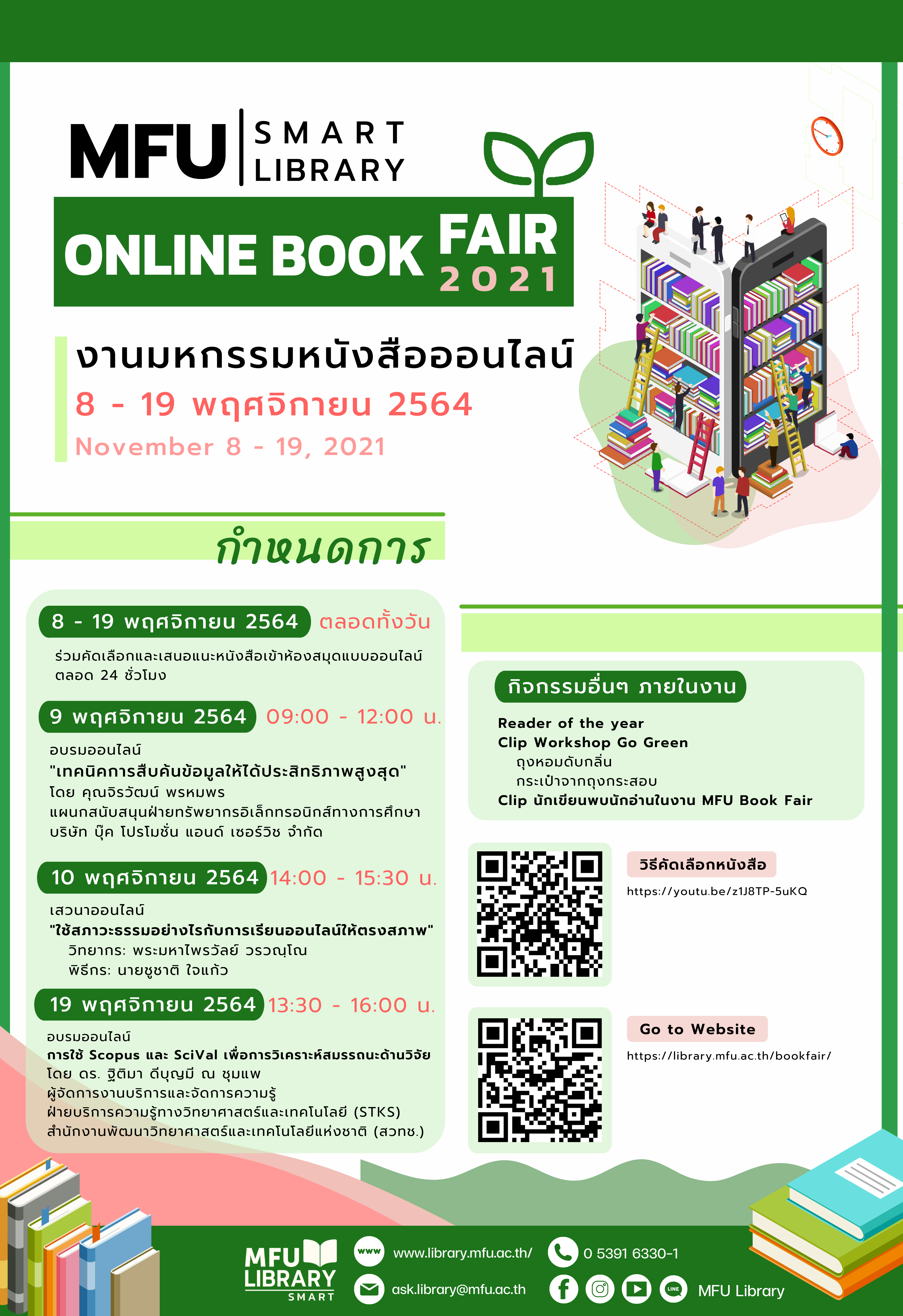 MFU Online Book Fair 2021 เปิดโอกาสให้ อาจารย์ นักศึกษา และบุคลากรของมหาวิทยาลัยแม่ฟ้าหลวง