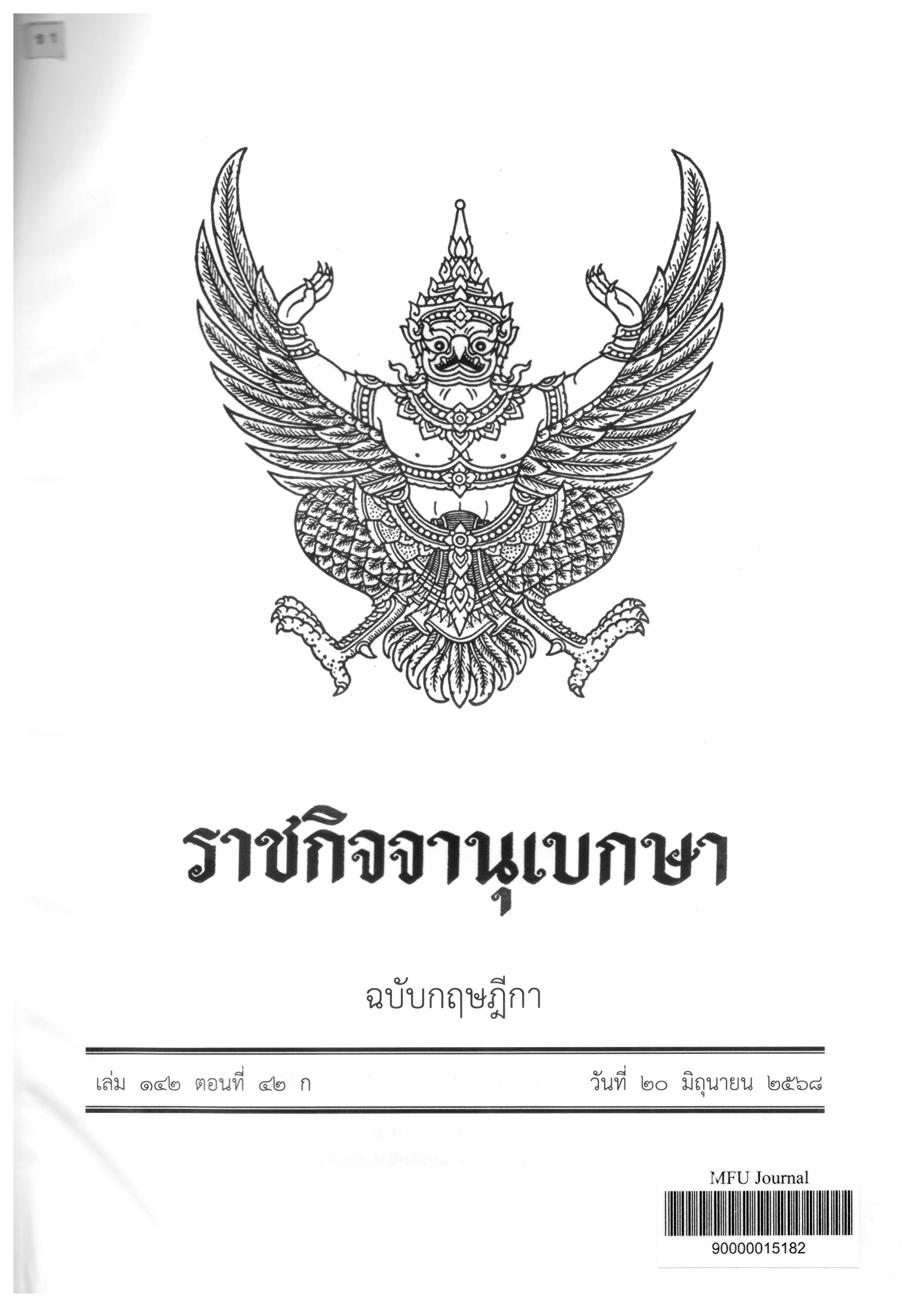 ราชกิจจานุเบกษา:ฉบับกฤษฎีกา (20 มิถุนายน 2568)