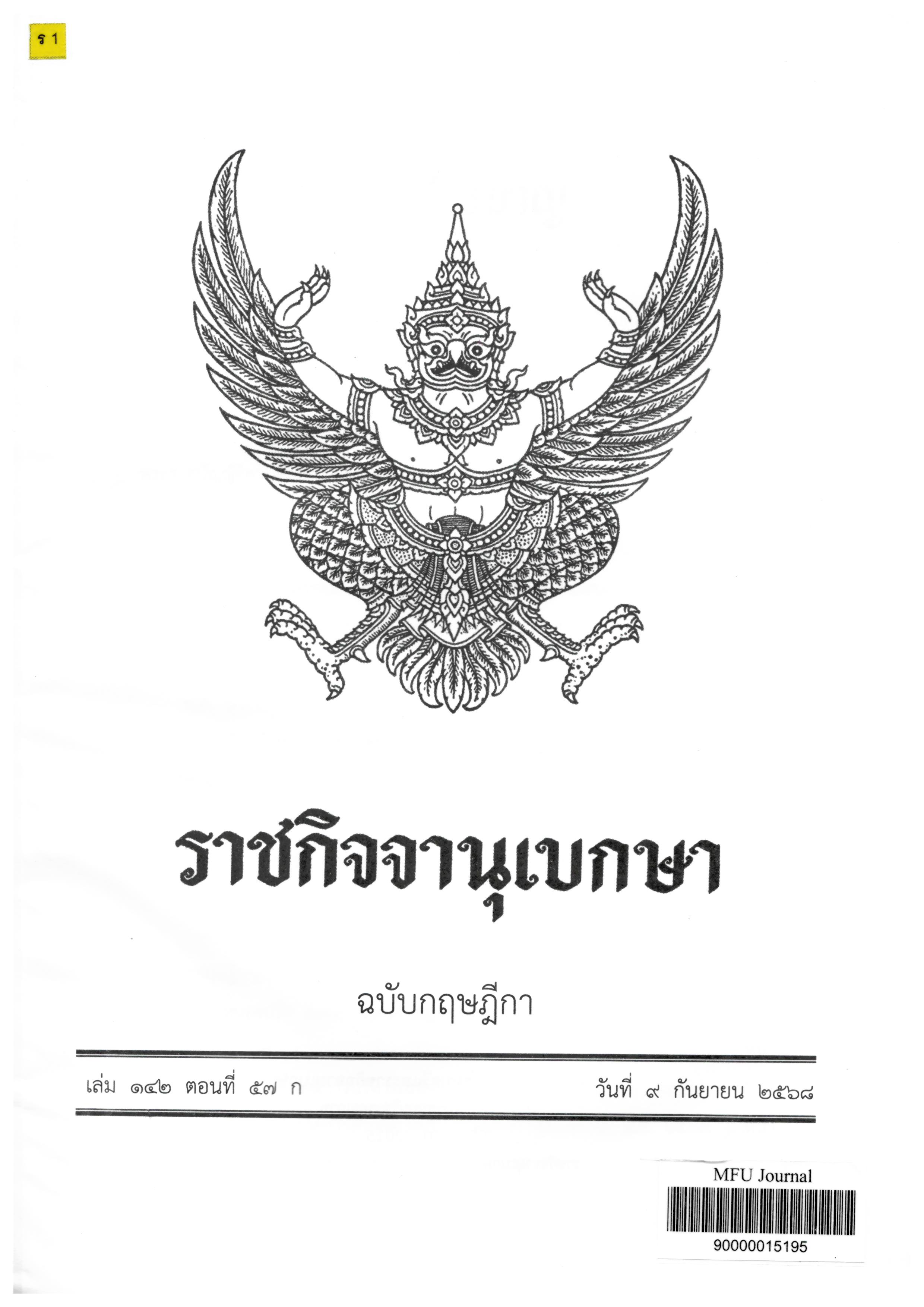Journal Title ราชกิจจานุเบกษา : ฉบับกฤษฎีกา