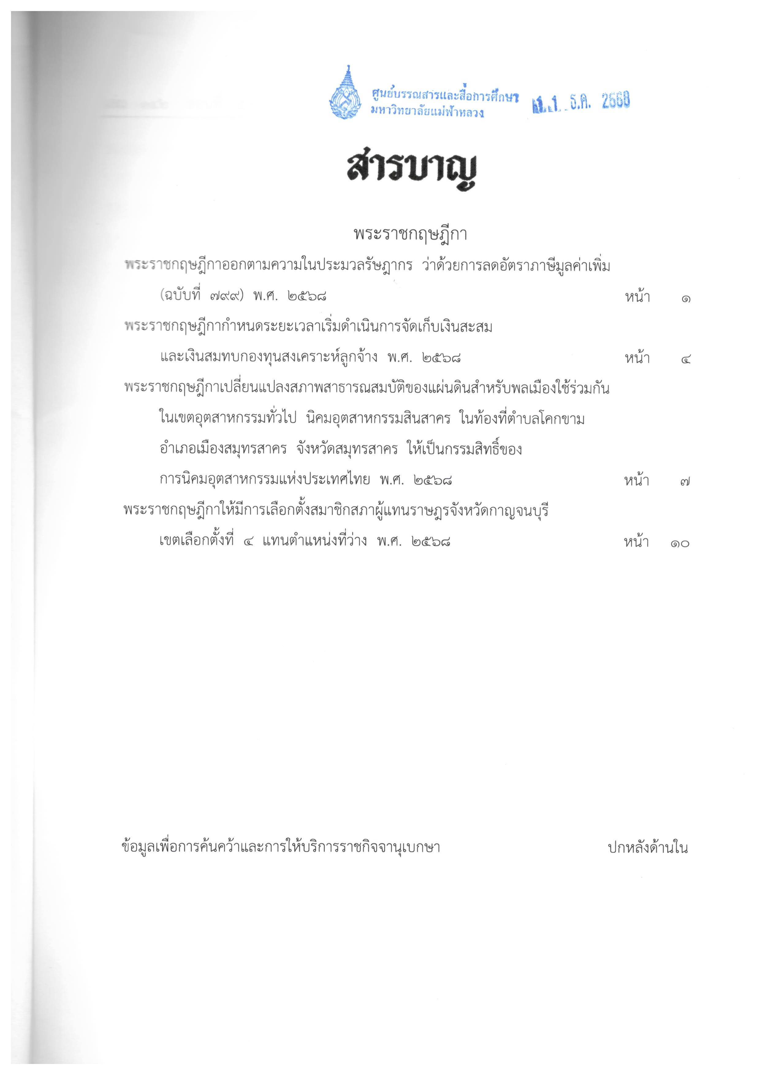 Journal Title ราชกิจจานุเบกษา : ฉบับกฤษฎีกา
