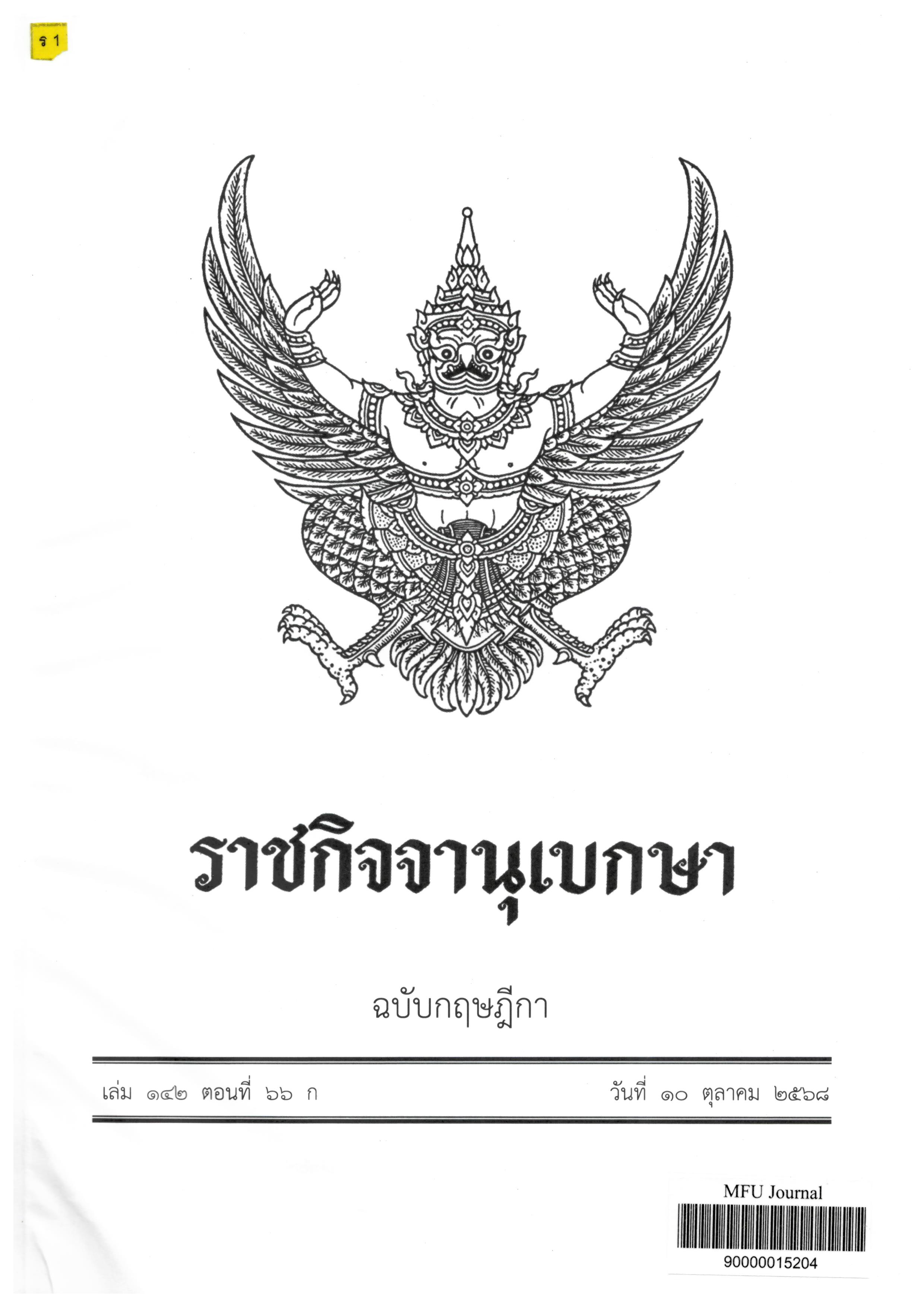 Journal Title ราชกิจจานุเบกษา : ฉบับกฤษฎีกา