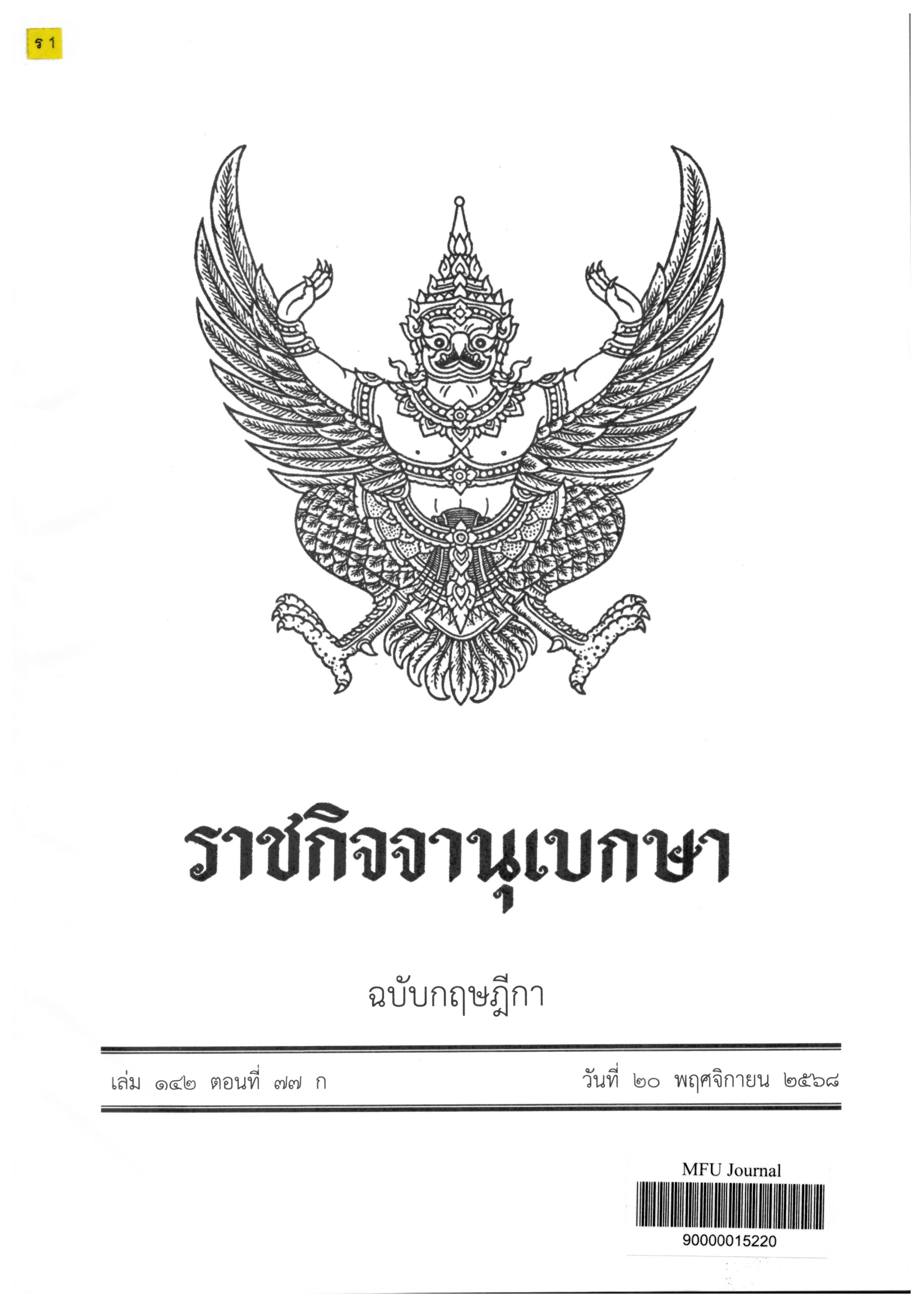 Journal Title ราชกิจจานุเบกษา : ฉบับกฤษฎีกา