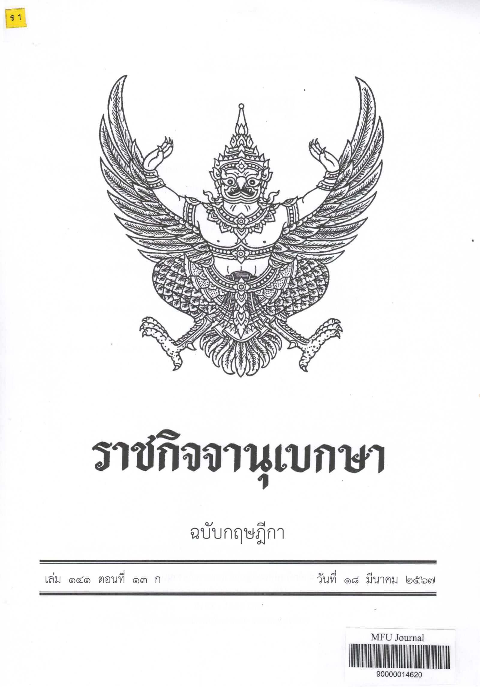 Journal Title ราชกิจจานุเบกษา : ฉบับกฤษฎีกา