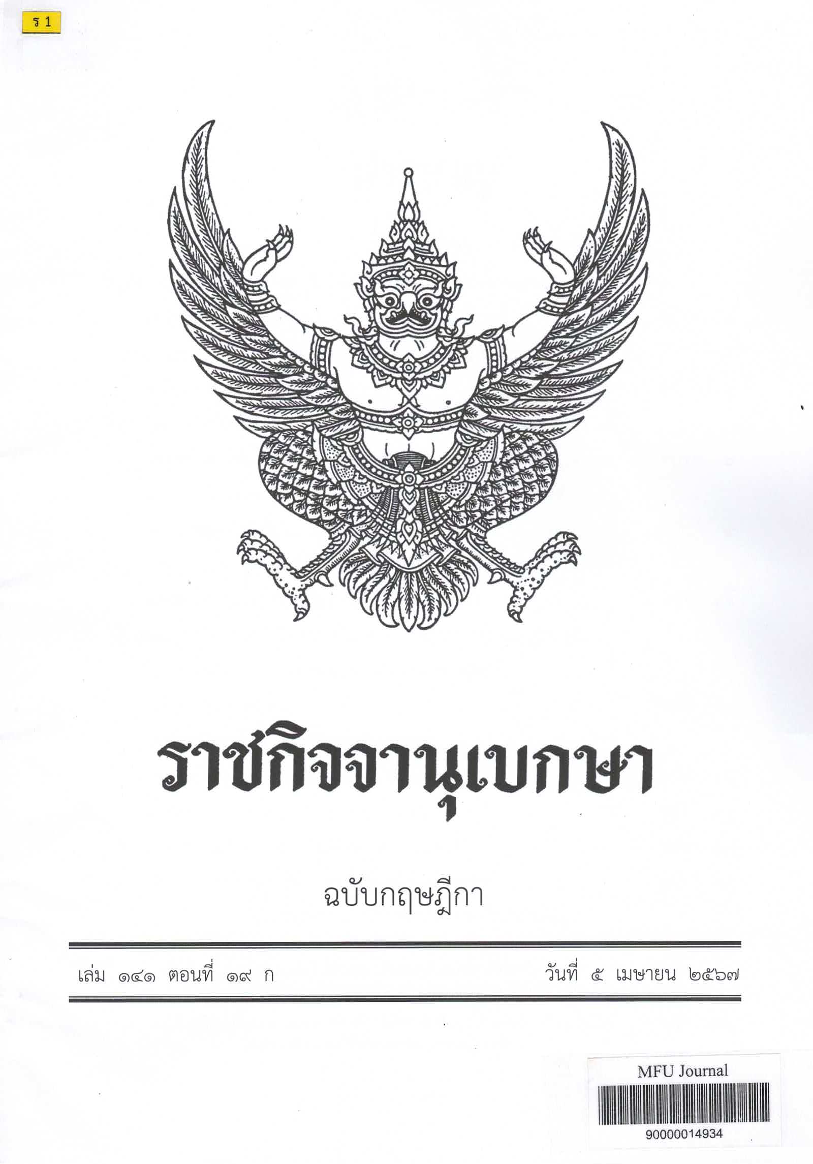 Journal Title ราชกิจจานุเบกษา : ฉบับกฤษฎีกา