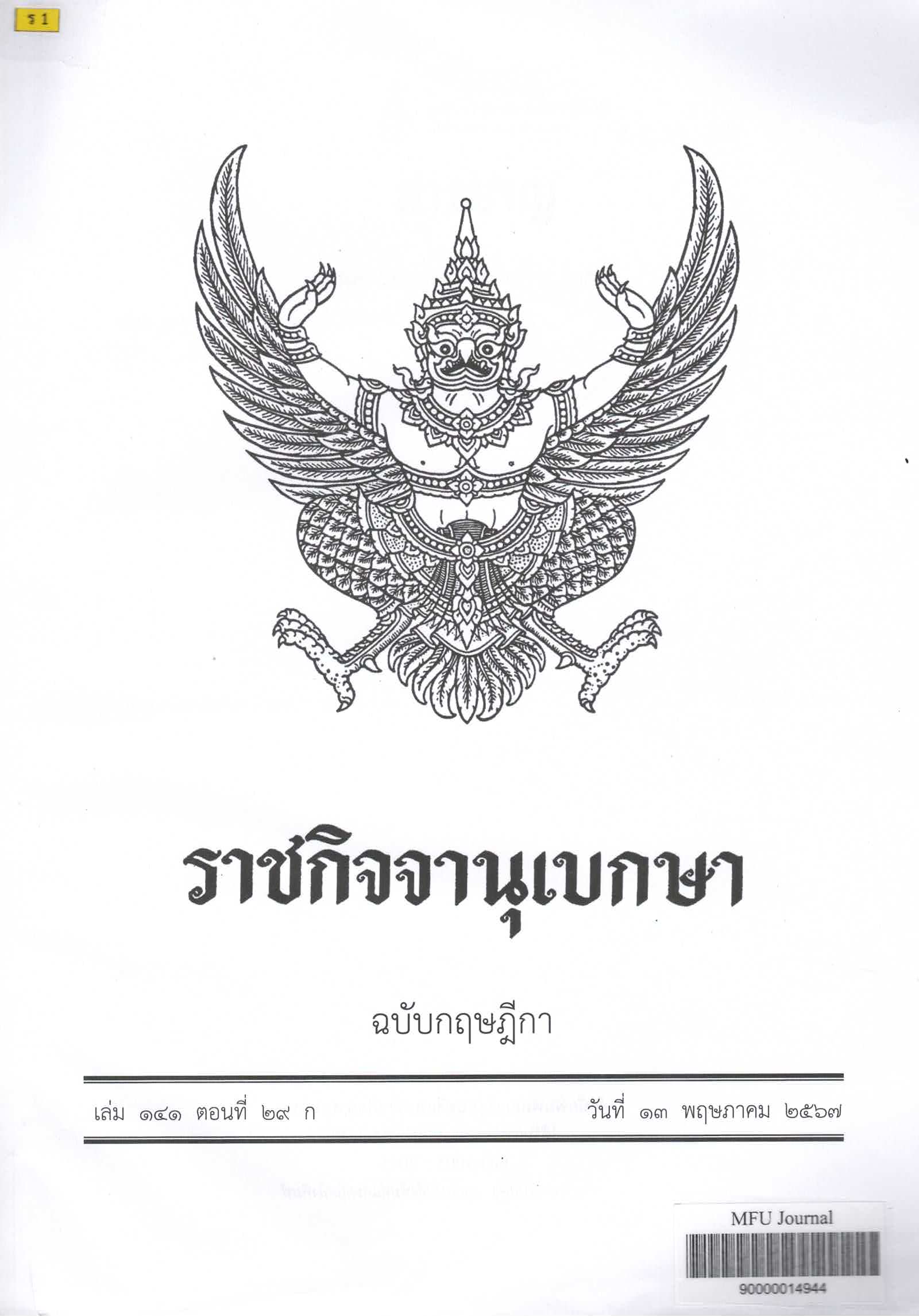 Journal Title ราชกิจจานุเบกษา : ฉบับกฤษฎีกา