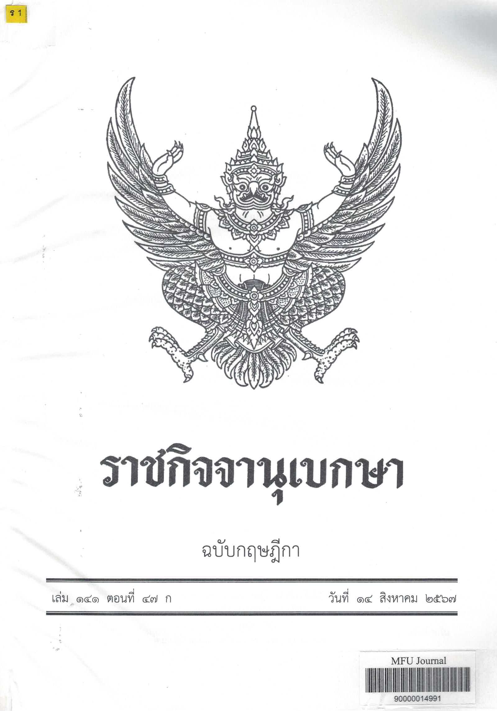 ราชกิจจานุเบกษา : ฉบับกฤษฎีกา (14 สิงหาคม 2567)