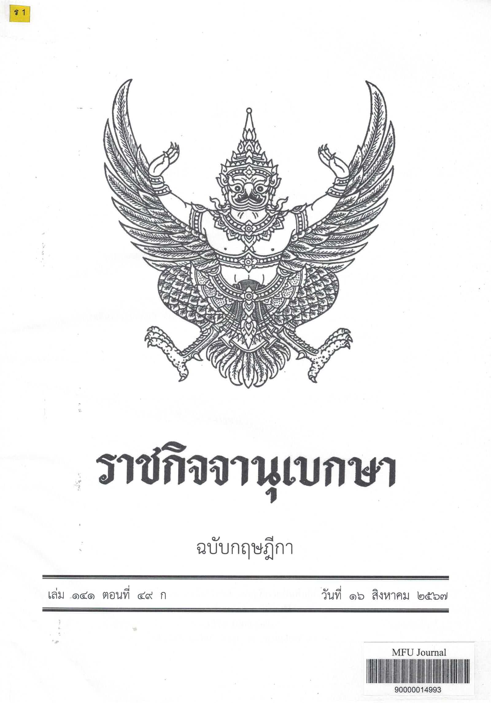 ราชกิจจานุเบกษา : ฉบับกฤษฎีกา (16 สิงหาคม 2567)