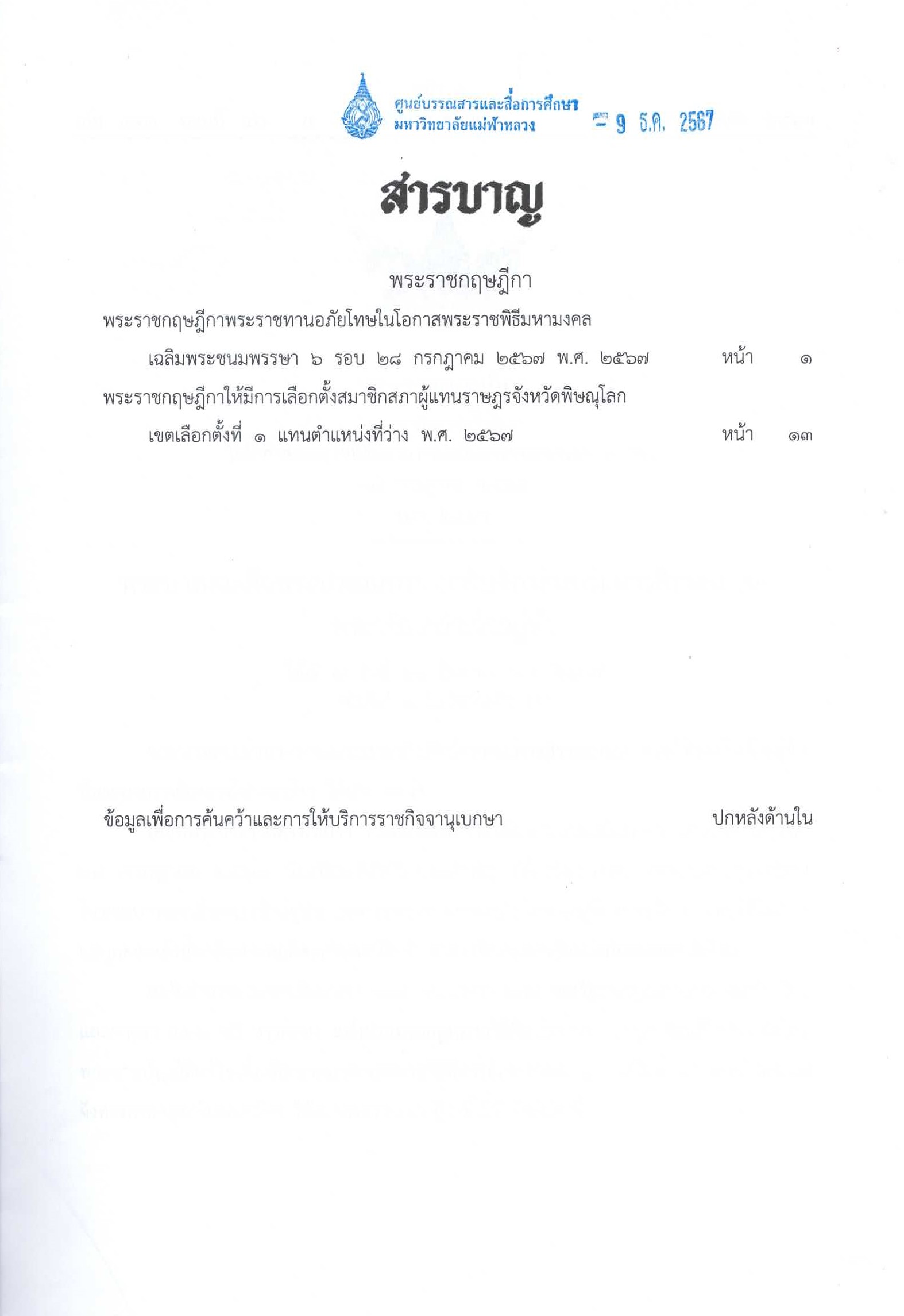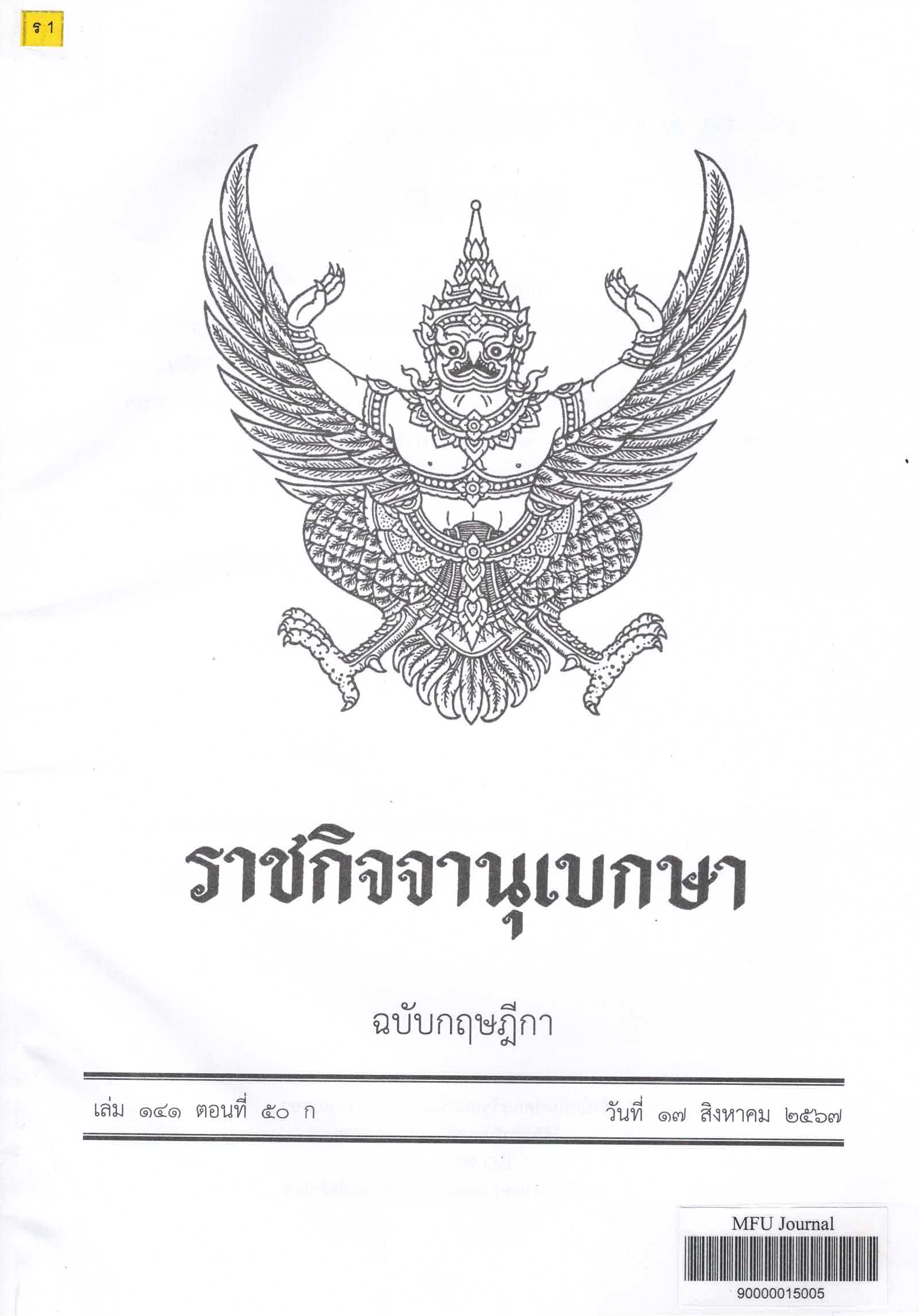 ราชกิจจานุเบกษา : ฉบับกฤษฎีกา (17 สิงหาคม 2567)