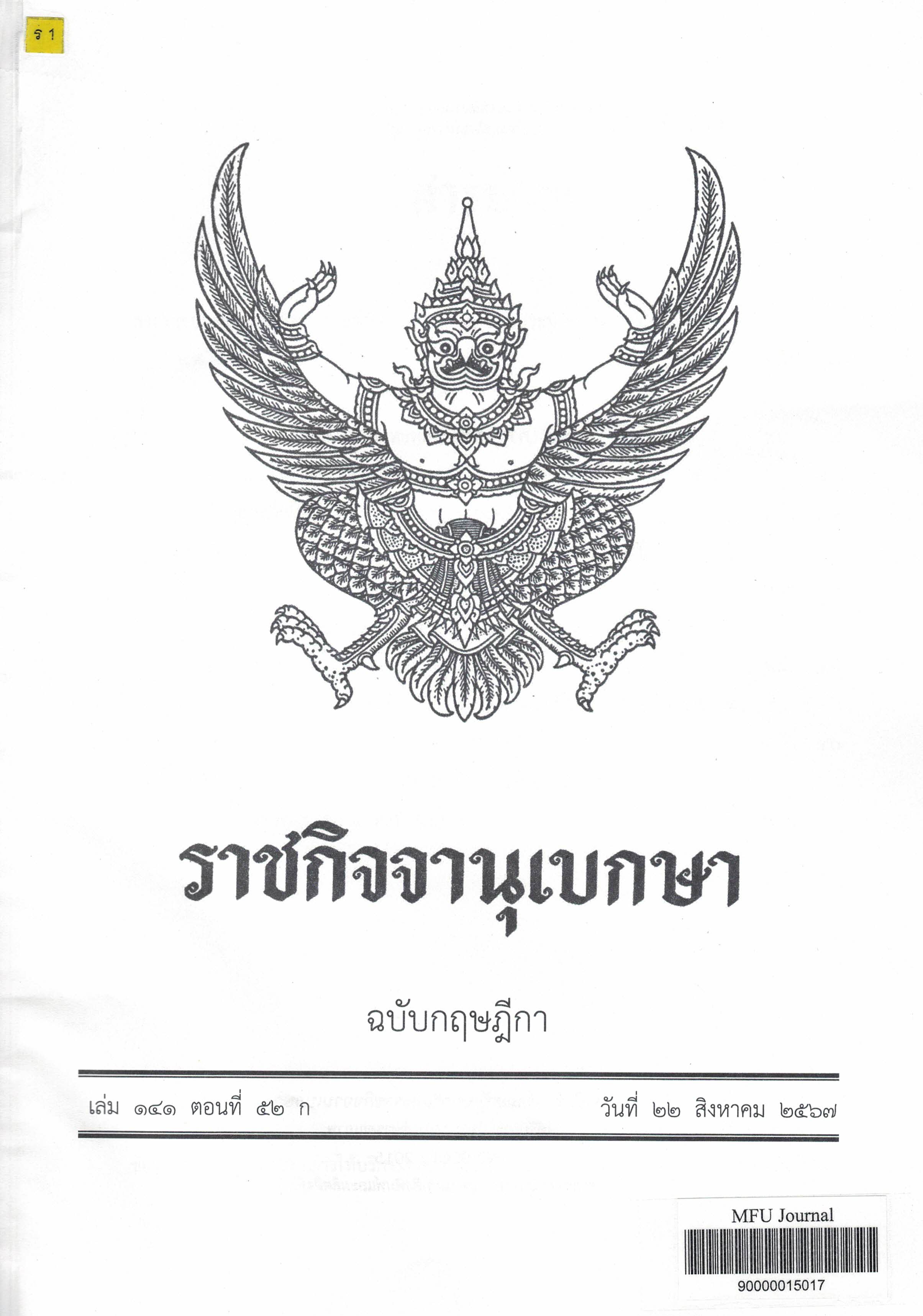Journal Title ราชกิจจานุเบกษา : ฉบับกฤษฎีกา