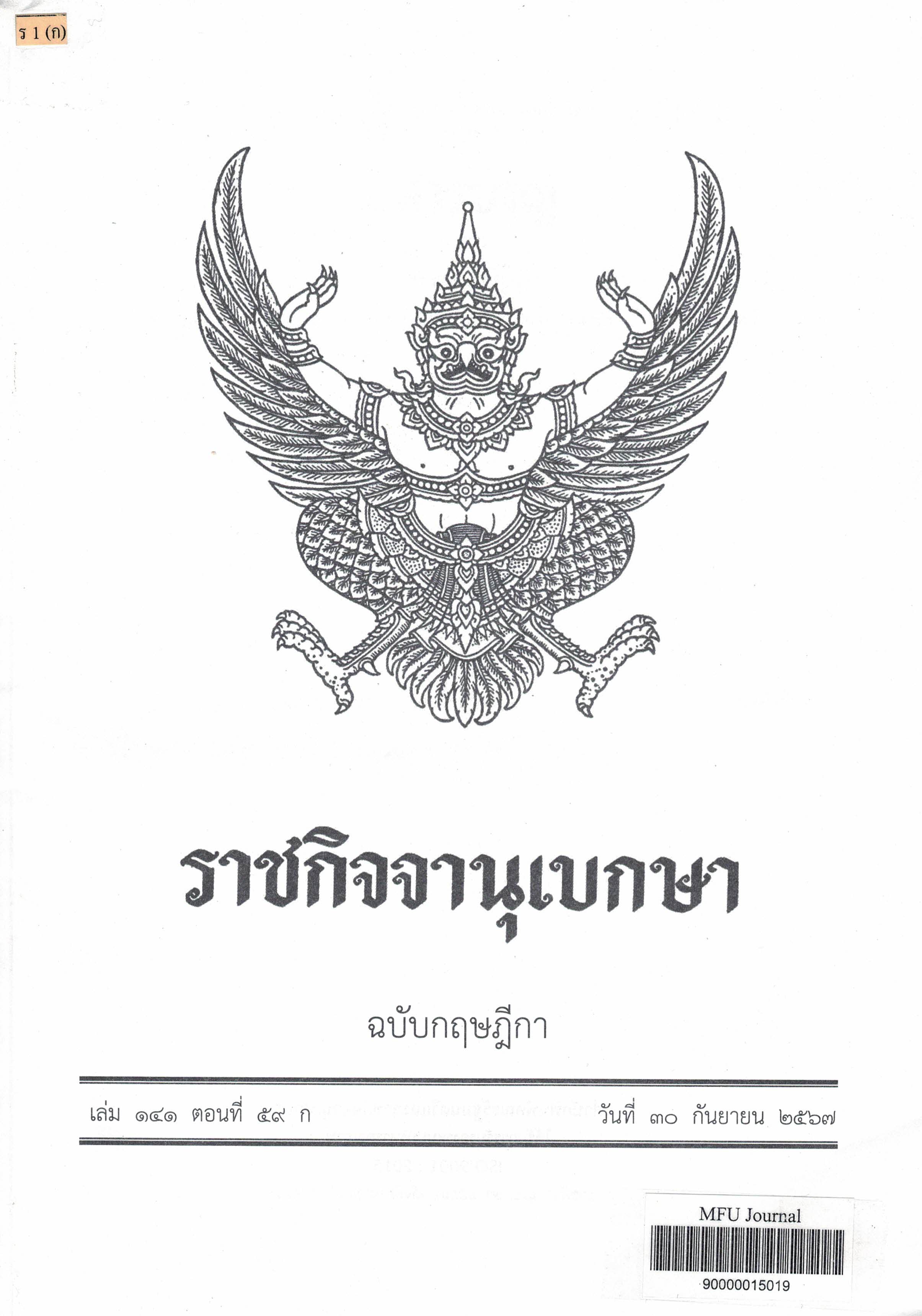 Journal Title ราชกิจจานุเบกษา : ฉบับกฤษฎีกา