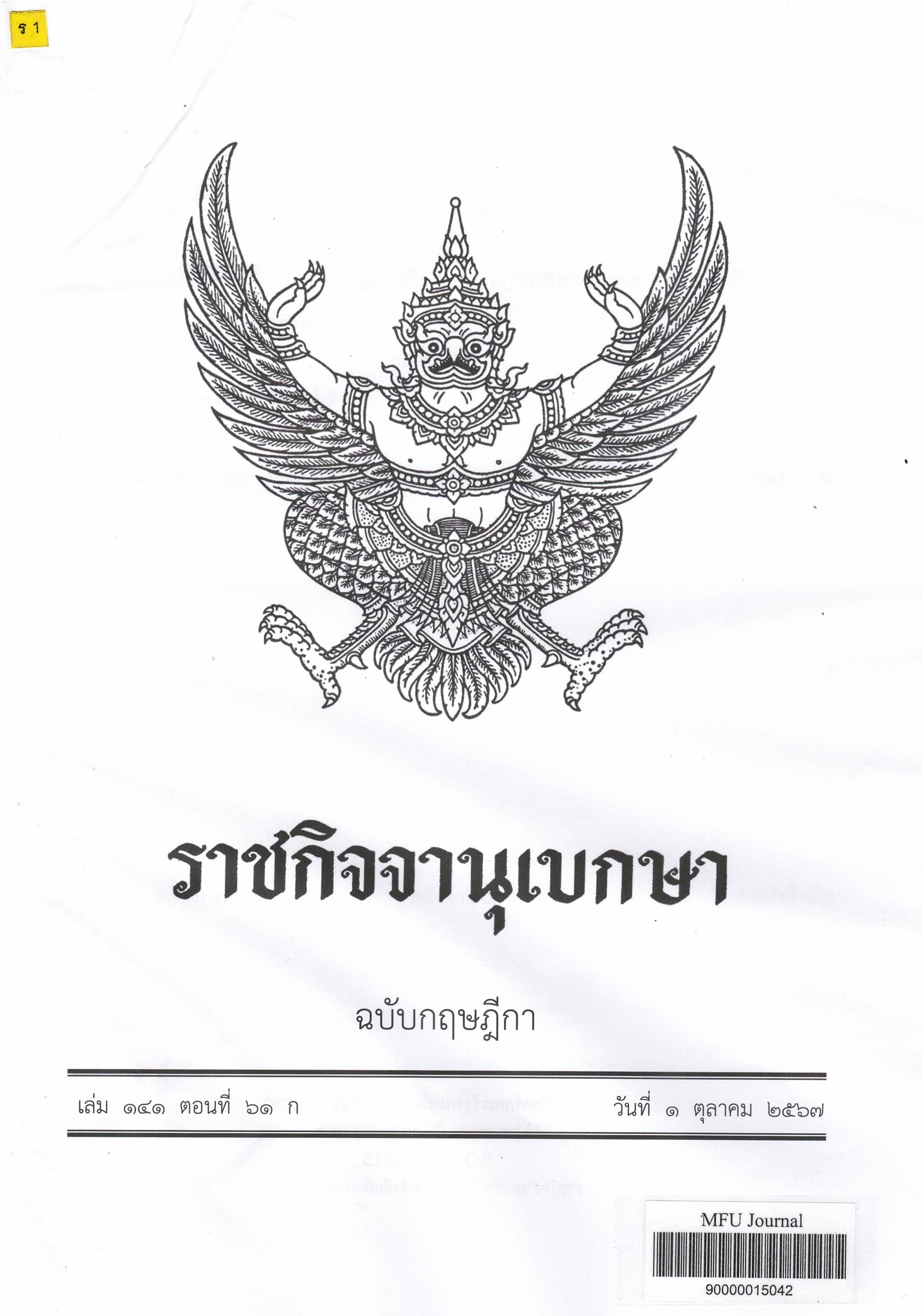 Journal Title ราชกิจจานุเบกษา : ฉบับกฤษฎีกา