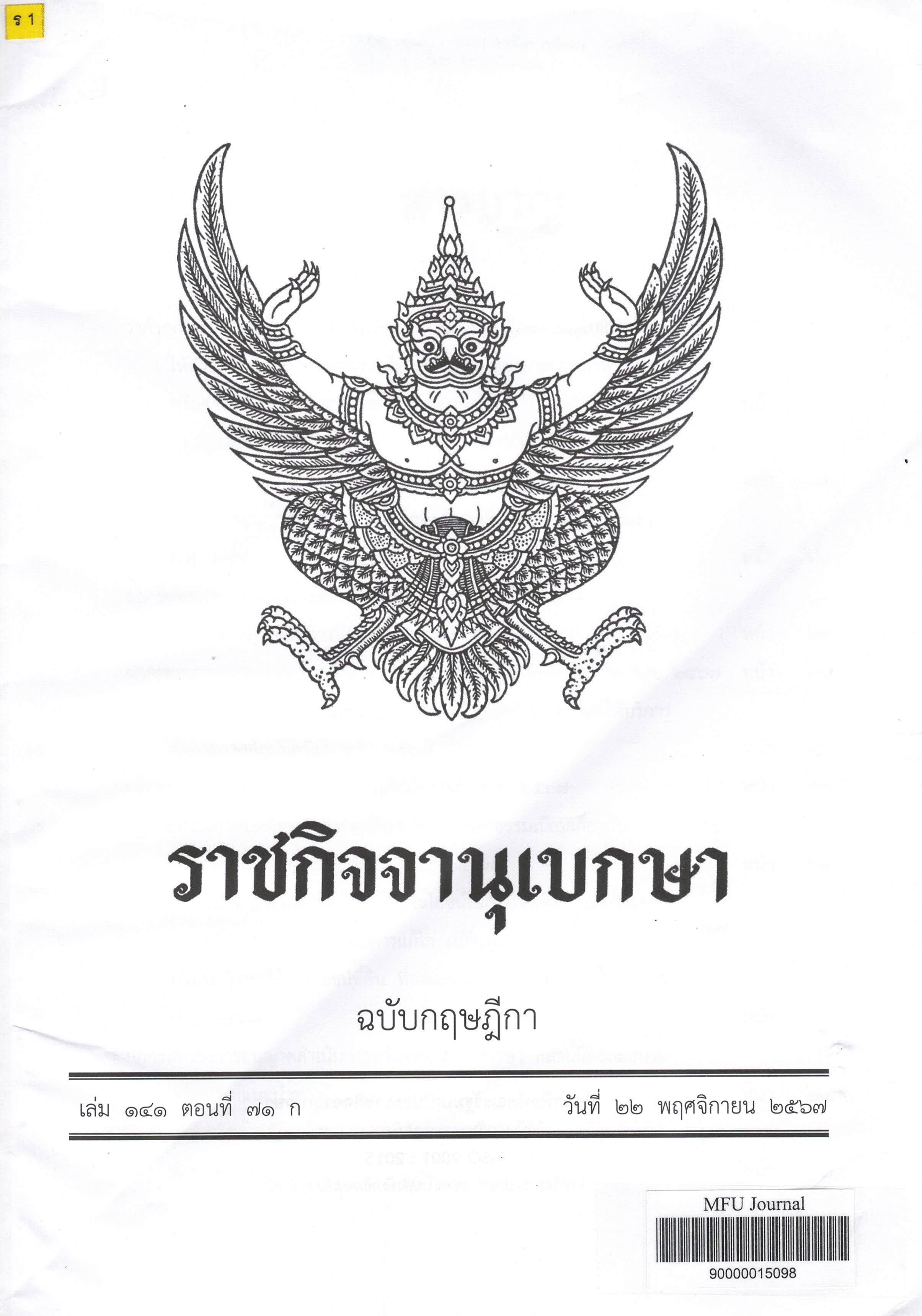 Journal Title ราชกิจจานุเบกษา : ฉบับกฤษฎีกา