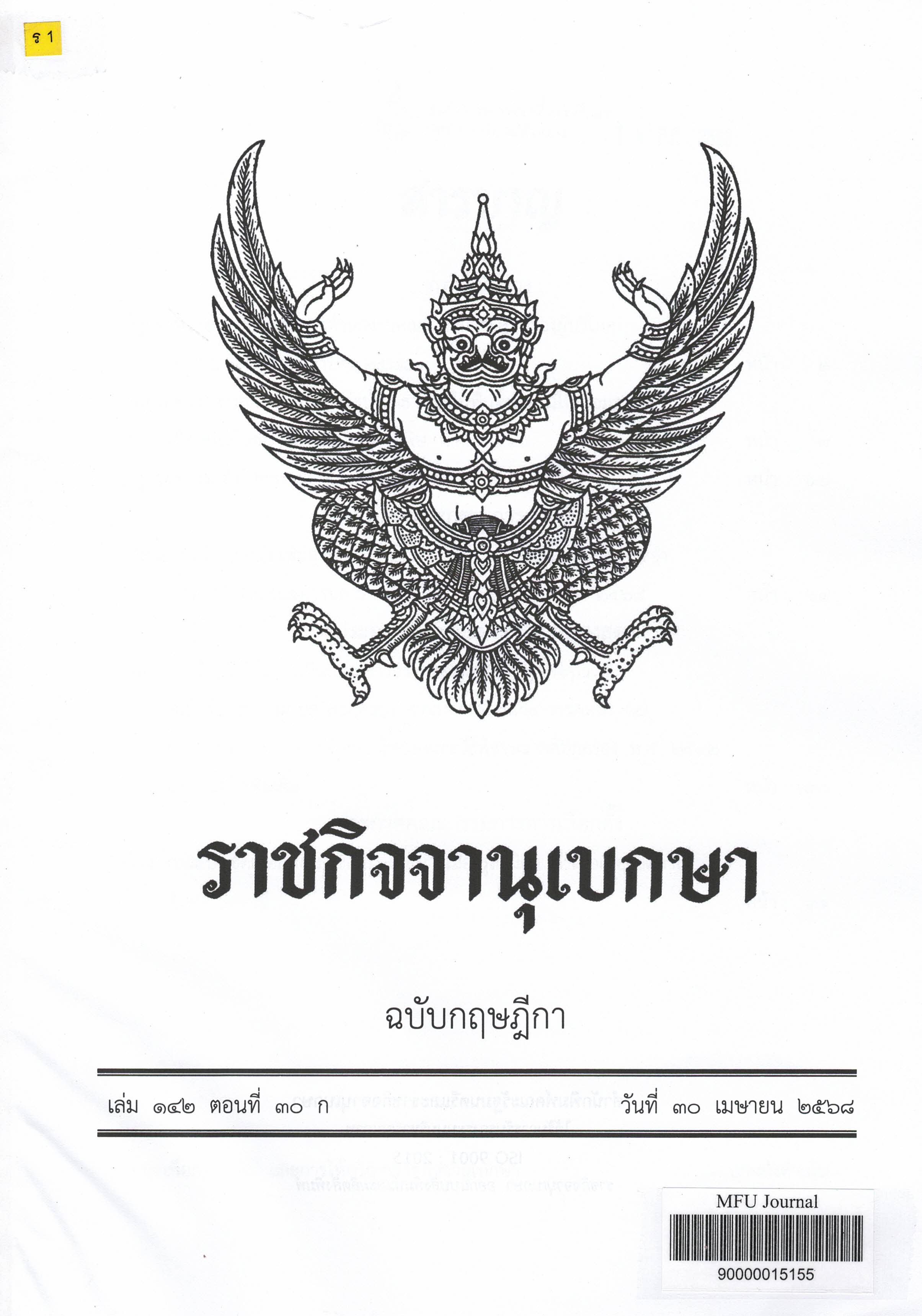 Journal Title ราชกิจจานุเบกษา : ฉบับกฤษฎีกา