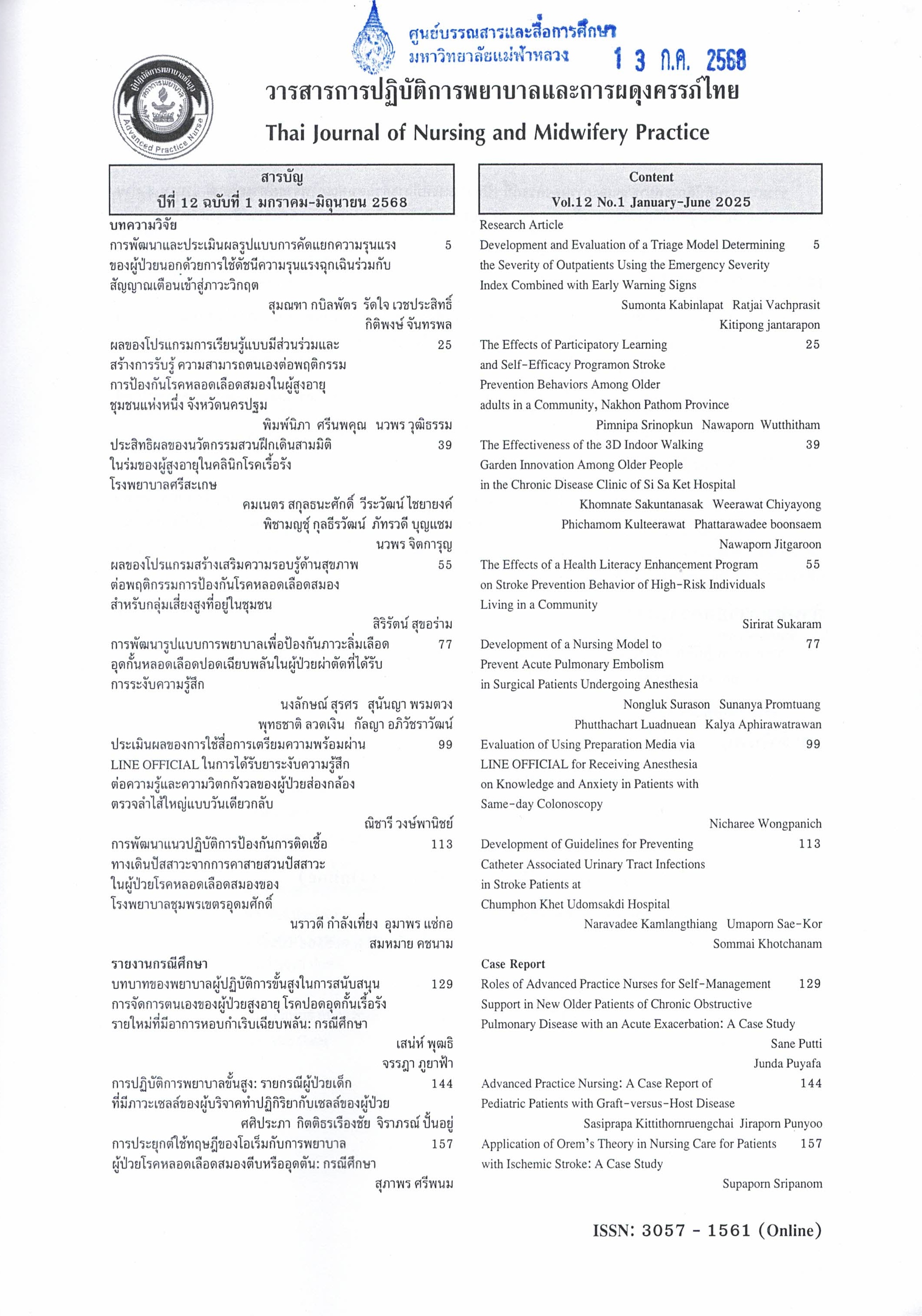 Journal Title วารสารการปฏิบัติการพยาบาลและการผดุงครรภ์ไทย