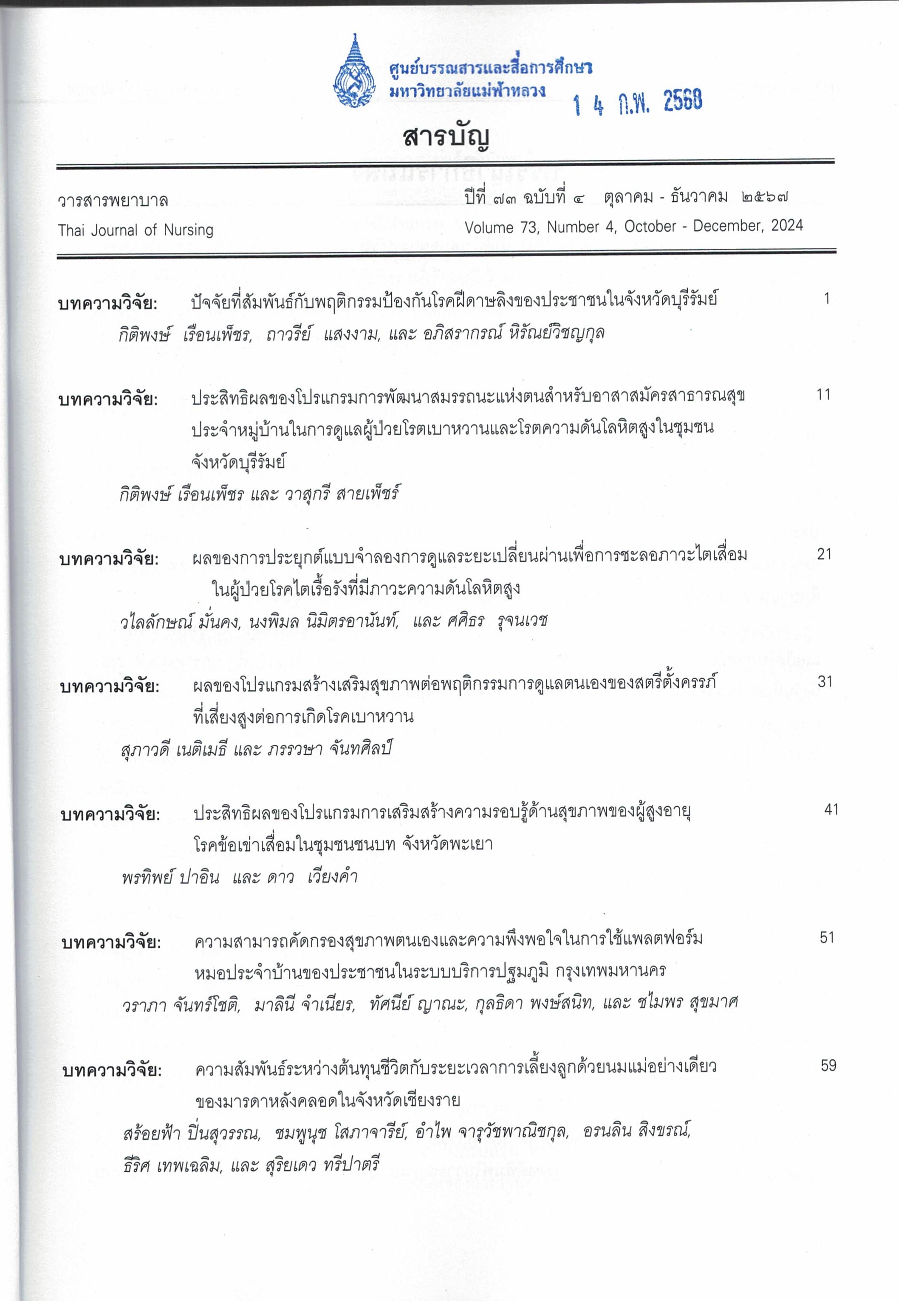 วารสารพยาบาล (ตุลาคม-ธันวาคม 2567)