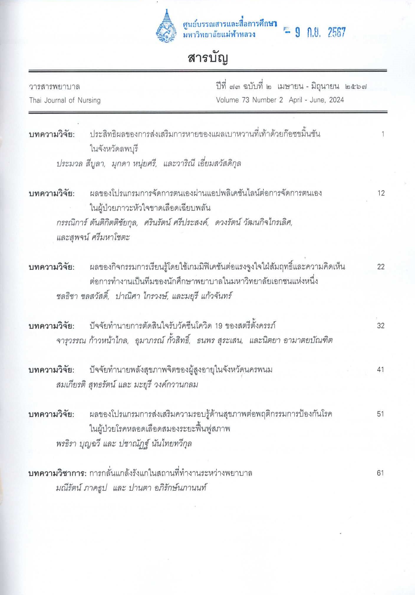 วารสารพยาบาล (เมษายน-มิถุนายน 2567)
