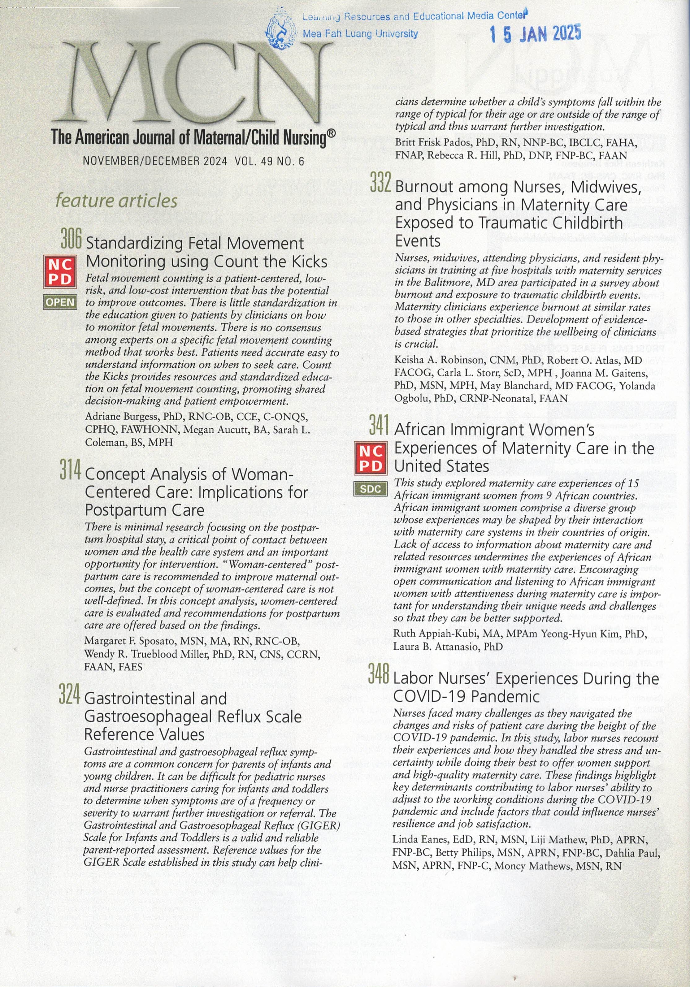 Journal Title American Journal of Maternal Child Nursing