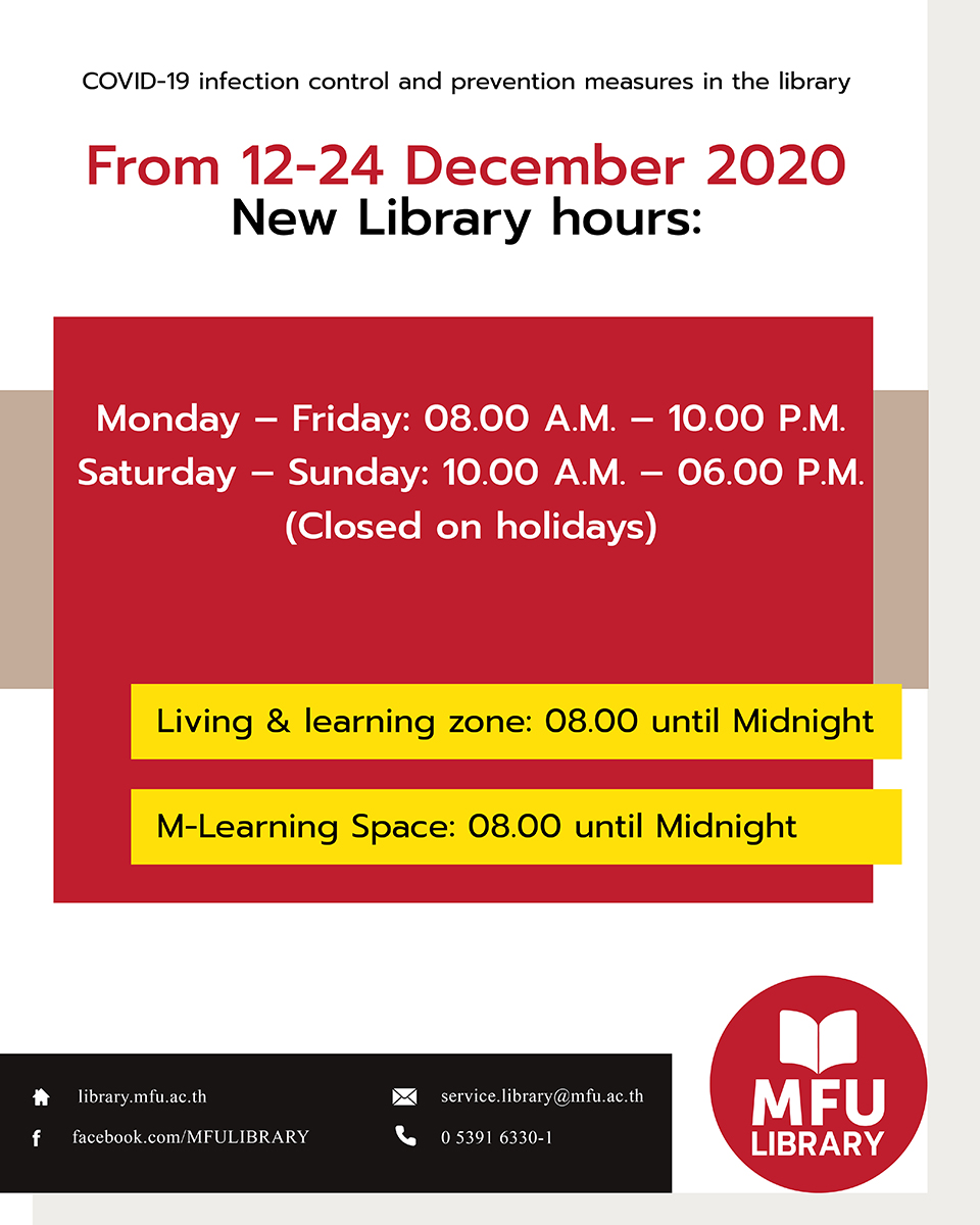 Living & learning zone and M-Learning Space: 08.00 until Midnight