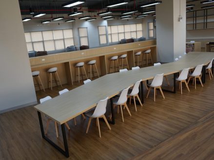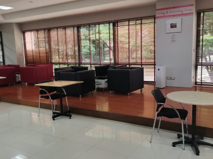 The Living & Learning Zone on the third floor is the area in front of the library that allows MFU students and staff to exchange knowledge and create activities and serves complimentary snacks and beverages at The Happy Corner during exam period.