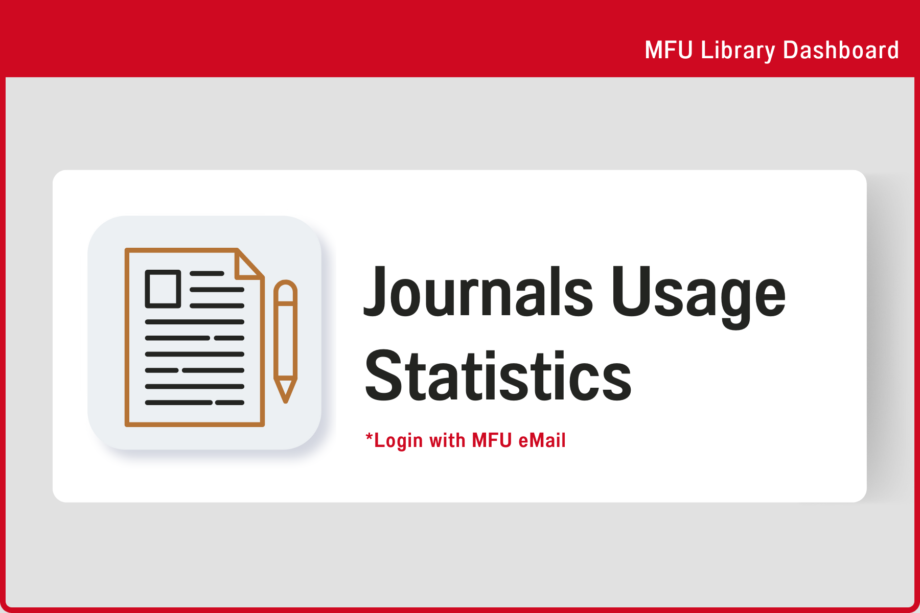 MFU Library Dashboard Details of Databases and Journals Usage. * Login with MFU eMail Details of Borrowing/Using Books by School.