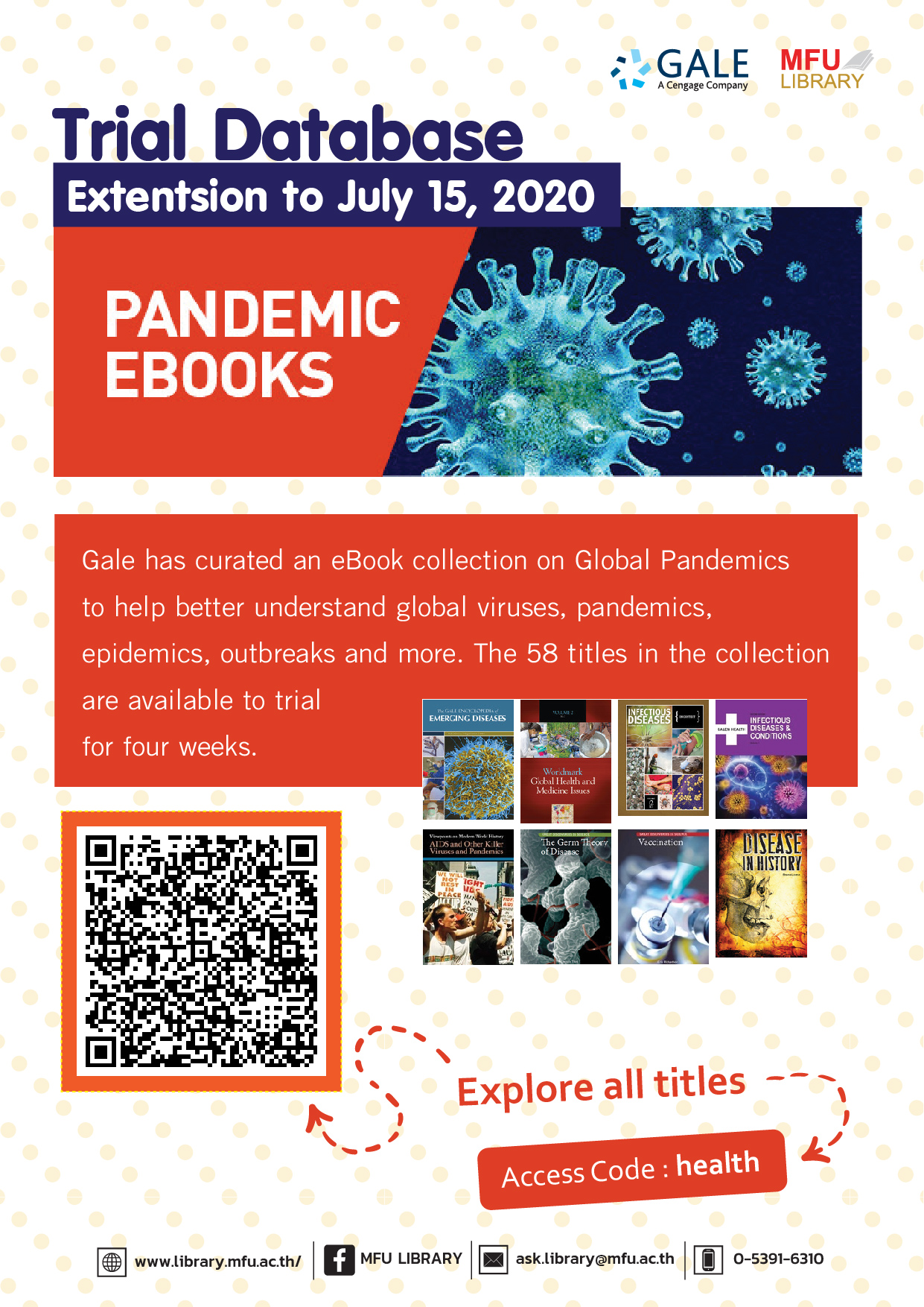 Gale has curated an eBook collection on Global Pandemics. The 58 titles in the collection are available to trial for four weeks.