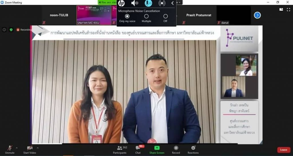 นายรักเผ่า เทพปัน และนางสาวพิชญา สาจันทร์ ตัวแทนจากศูนย์บรรณสารและสื่อการศึกษา มหาวิทยาลัยแม่ฟ้าหลวง ได้รับรางวัลระดับชมเชยจากการนำเสนอผลงานวิชาการประเภทโปสเตอร์ ในผลงานเรื่อง “การพัฒนาแอพลิเคชั่นสำรองที่นั่งอ่านหนังสือ ของศูนย์บรรณสารและสื่อการศึกษา มหาวิทยาลัยแม่ฟ้าหลวง” จากการประชุมวิชาการระดับชาติ PULINET ครั้งที่ 11 (The 11th PULINET Online National Conference – PULINET 2021) : New Normal for Libraries: Opportunities & Challenges เมื่อวันที่ 6-7 มกราคม 2564 จัดโดยเครือข่ายห้องสมุดมหาวิทยาลัยส่วนภูมิภาค (PULINET)