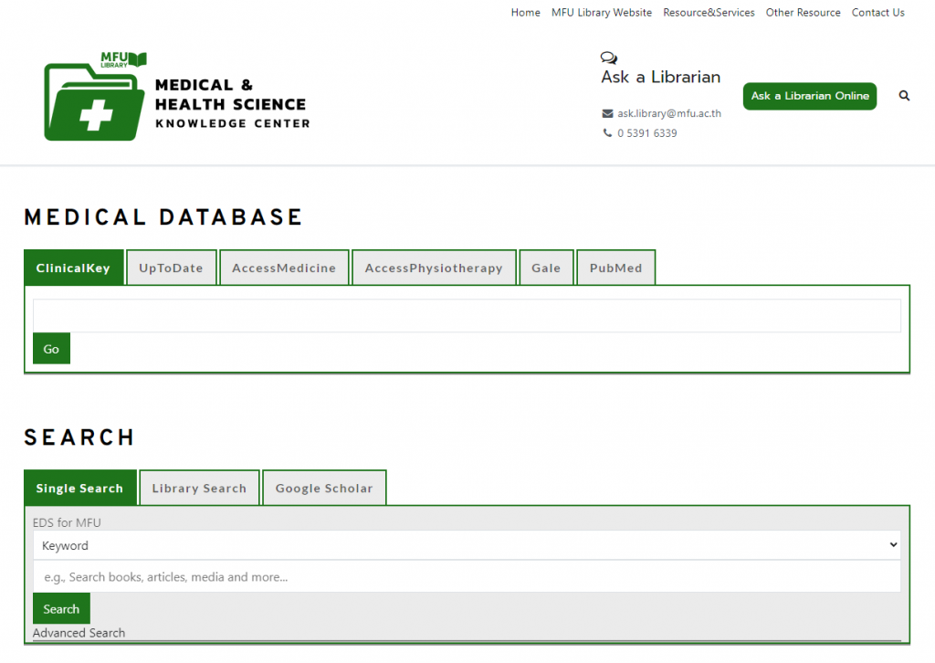 โดยรวบรวมบริการออนไลน์และฐานข้อมูลที่เกี่ยวข้องทางการแพทย์ เพื่ออำนวยความสะดวกให้ผู้ใช้บริการในการเข้าถึงในรูปแบบออนไลน์ ทั้งนี้ ในปีงบบระมาณ พ.ศ. 2566 (ข้อมูล ณ วันที่ 30 กันยายน 2566) มีผู้เยี่ยมชมเว็บไซต์ Medical & Health Science Knowledge Center จำนวน 5,800 ครั้ง