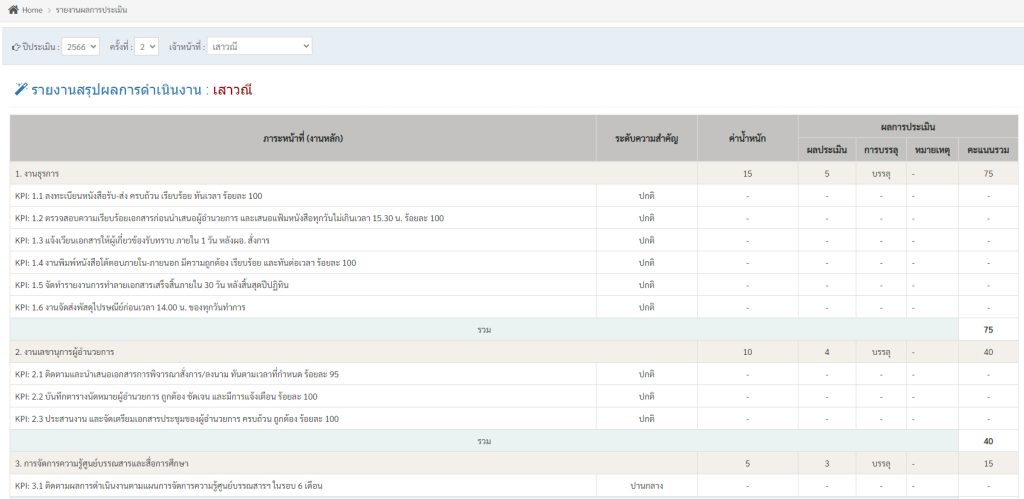 ระบบติดตามตัวชี้วัดความสำเร็จ (KPI) การปฏิบัติงานพนักงาน ศูนย์บรรณสารฯ