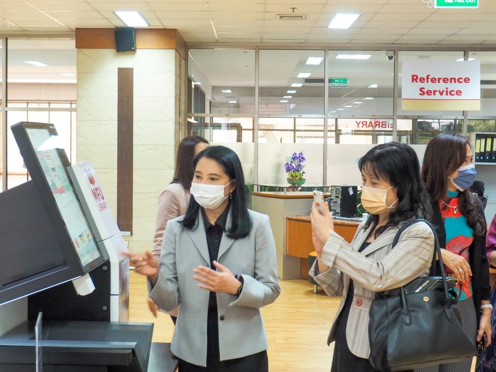 15 กุมภาพันธ์ 2566 | ต้อนรับคณะผู้บริหารและบุคลากรจากสำนักหอสมุดกลาง มหาวิทยาลัยเทคโนโลยีพระจอมเกล้าพระนครเหนือนการศึกษาดูงาน หัวข้อ ห้องสมุดสีเขียว (Green Library) เกณฑ์คุณภาพการศึกษาเพื่อการดำเนินการที่เป็นเลิศ (EdPEx) และการให้บริการที่มีคุณภาพ พร้อมทั้งนี้ได้เข้าเยี่ยมชมศูนย์บรรณสารและสื่อการศึกษา และหอประวัติของมหาวิทยาลัย |