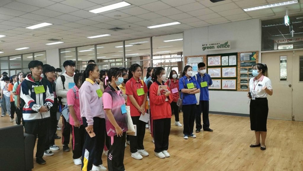 13 มิถุนายน 2566 | ต้อนรับผู้บริหาร คณาจารย์ และบุคลากรจากสำนักวิชาวิทยาศาสตร์สุขภาพ มหาวิทยาลัยแม่ฟ้าหลวง เข้าศึกษาดูงานและแลกเปลี่ยนเรียนรู้เรื่องการดำเนินงานสำนักงานสีเขียว (Green Office) พร้อมทั้งเยี่ยมชมพื้นที่ของศูนย์บรรณสารฯ |