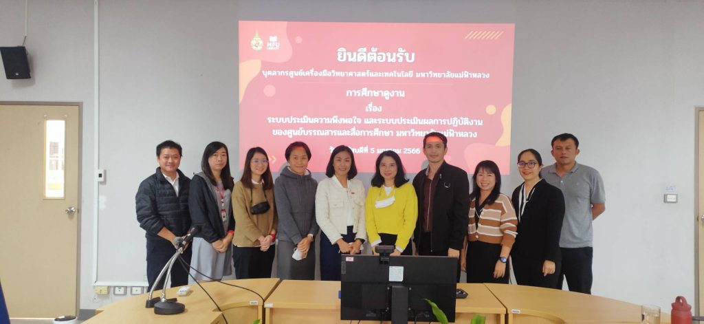 21 ธันวาคม 2565 | ต้อนรับคณะศึกษาดูงานจากส่วนพัฒนาความสัมพันธ์ระหว่างประเทศ มหาวิทยาลัยแม่ฟ้าหลวง ศึกษาดูงานและแลกเปลี่ยนเรียนรู้ เรื่อง ” การบริหารจัดการข้อมูลสารสนเทศและการประเมินความพึงพอใจผู้ใช้บริการ” |